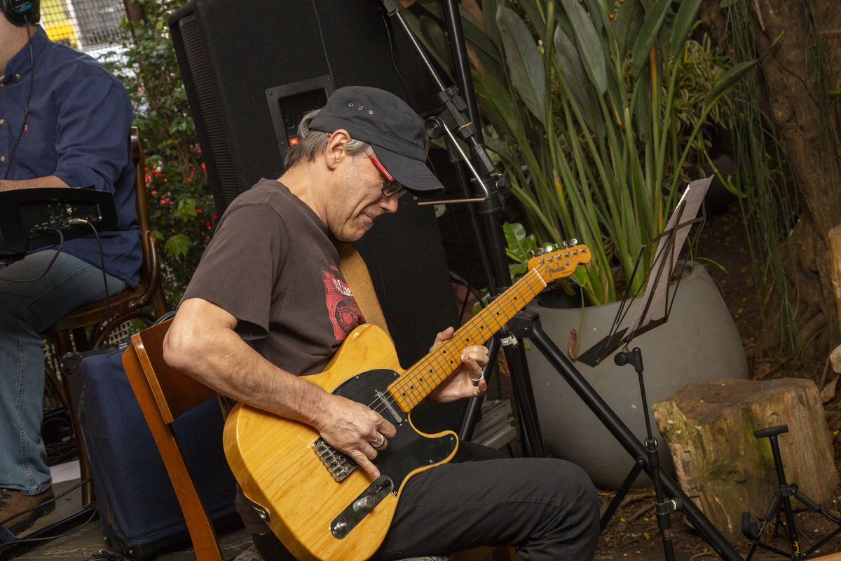 No dia 01 de novembro de 2025, realizei a cobertura fotográfica da reFestança Primavera25, um evento vibrante que uniu amigos, arte e música no cenário único da tradicional loja de plantas Ninfa Flores, em São Paulo. O dia, que prometia chuva, nos presenteou com um clima perfeito para a celebração em meio a árvores e flores.