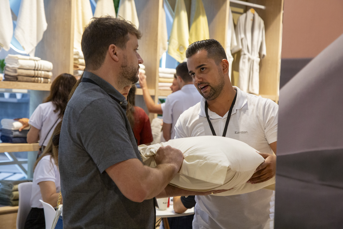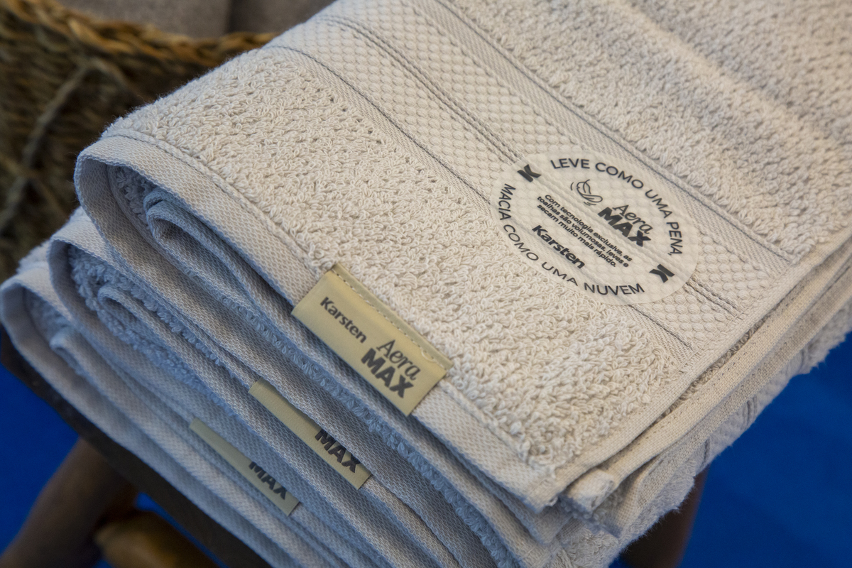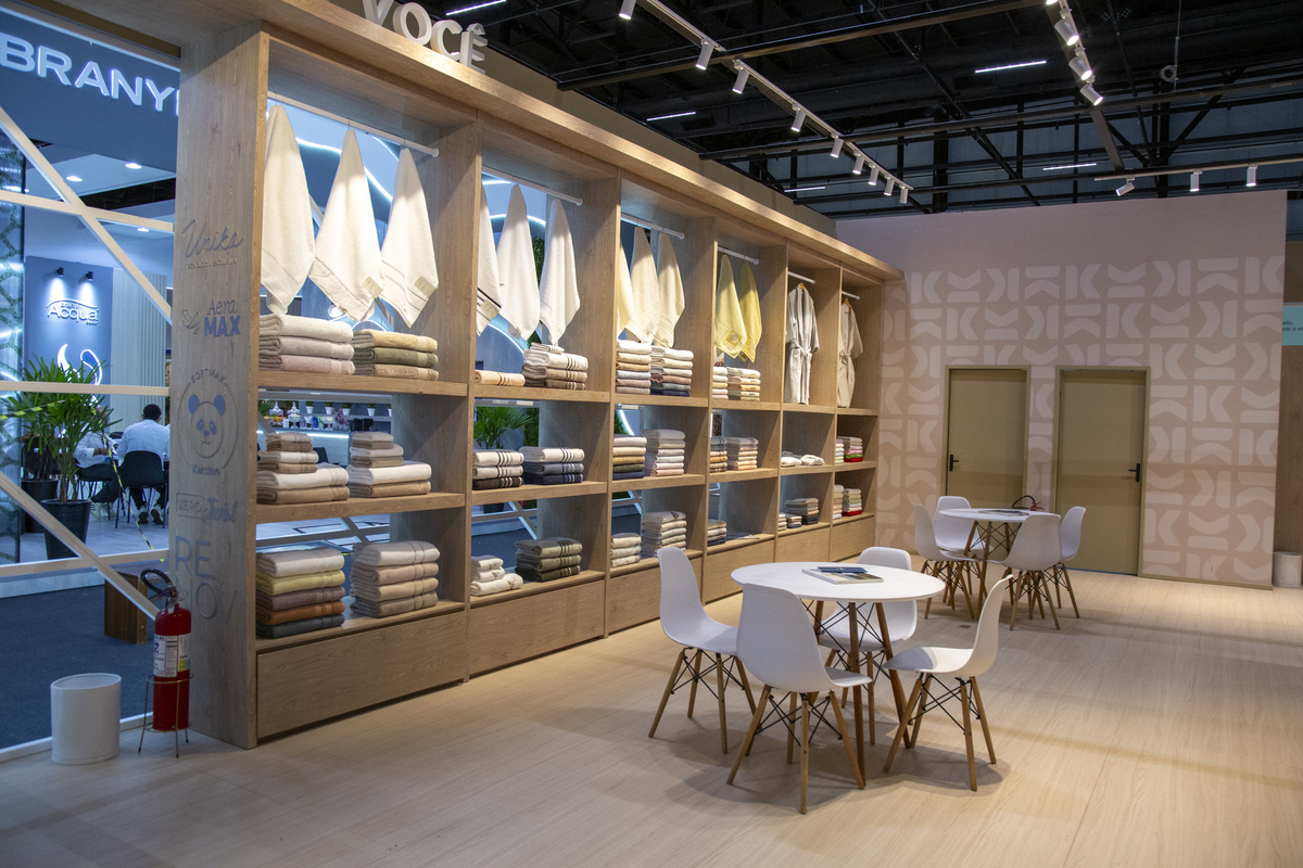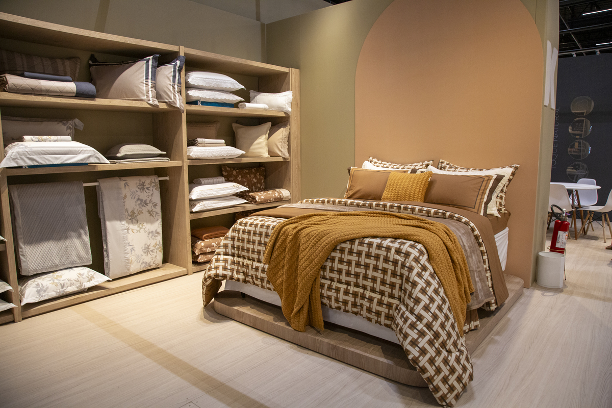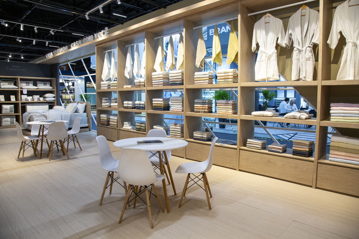 Mais do que registrar paredes, o foco foi o relacionamento e o sensorial. A Karsten é sinônimo de toque e qualidade. Busquei registrar a interação dos visitantes com os produtos, como o momento exato em que sentem a maciez dos tecidos e a qualidade dos acabamentos. São essas imagens que traduzem o valor real da marca para o marketing pós-evento.