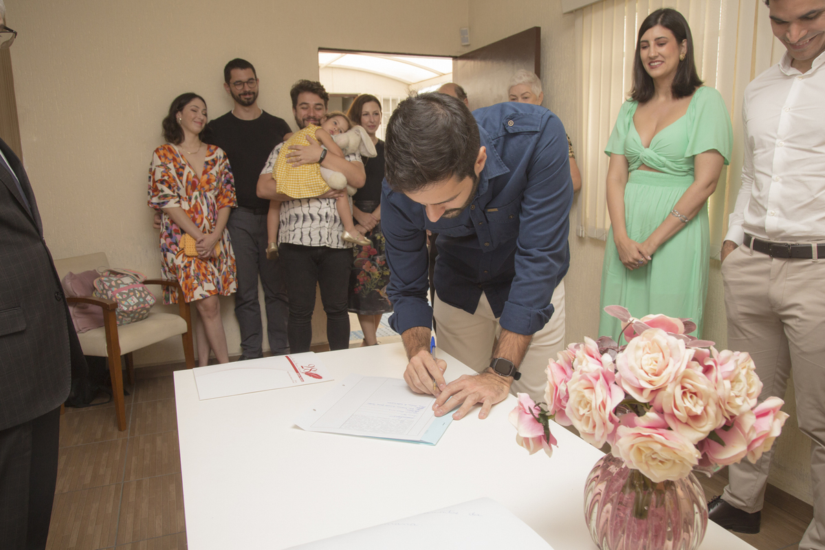 No dia 11 de março de 2023, tive o prazer de registrar o casamento civil da Ana e do Leonardo no 28º Cartório Jardim Paulista. Foi um dia de pura celebração e união, marcado pela presença calorosa de familiares e amigos, que testemunharam o início dessa nova etapa na vida do casal. As fotos capturam a alegria e a emoção desse momento tão especial.
