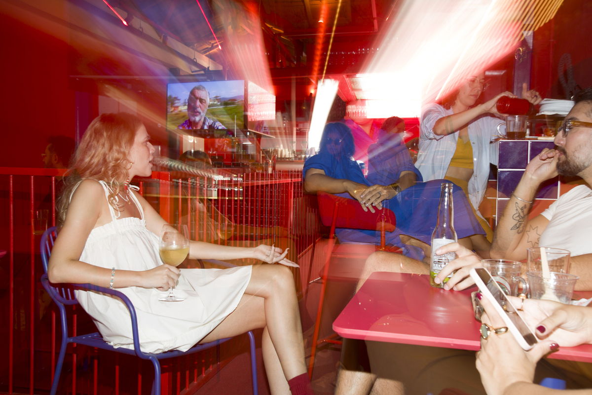 Exploramos uma linguagem visual com luz dura e sombras definidas, trazendo um ar de "flagra espontâneo" e atemporal. O uso do flash direto criou uma estética vibrante, com molduras naturais e um contraste que valoriza cada detalhe da cena, desde o brilho nos olhos até a textura do ambiente.