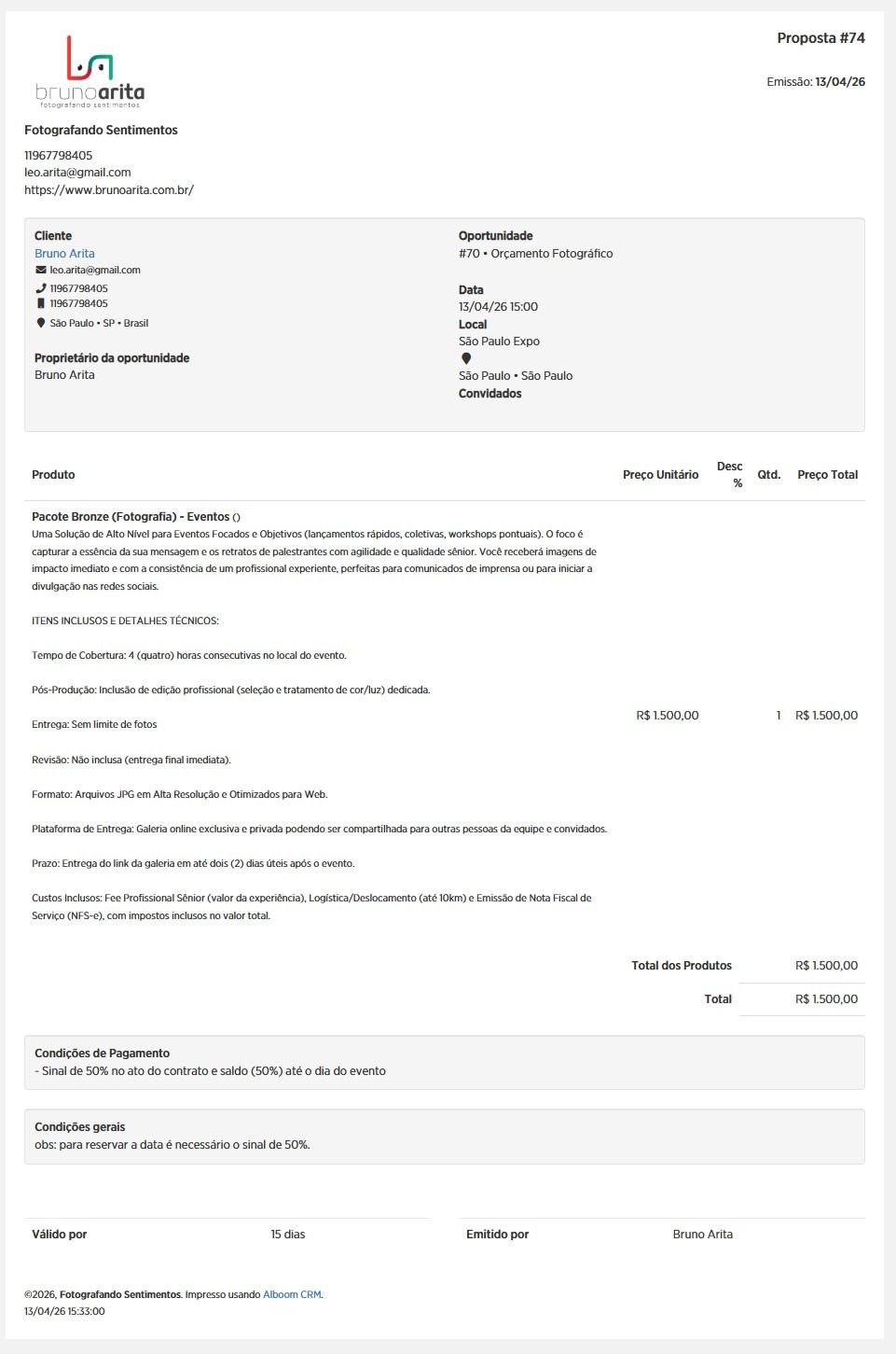 Mesmo quando o contato inicial é via WhatsApp ou e-mail, sempre oficializo a proposta com esse link. Padronizar o atendimento e utilizar um sistema profissional garante a você, cliente, muito mais segurança na contratação. Não é apenas o produto final que importa, mas todo o processo que o acompanha.